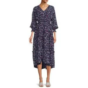 Beautiful prints and a lovely draped fabric creates a stunning piece for any occasion. From brunch to formal events, wear Time and Tru's Woven Long Sleeve Printed Dress to stand out wherever you go.