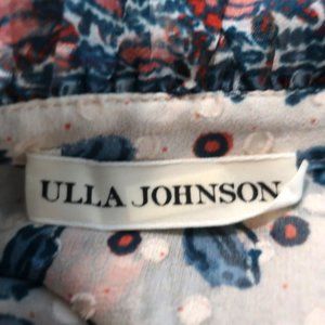ULLA JOHNSON DRESS DANI CREAM/RED RUFFLED FLORAL CHIFFON SIZE 2 LONG SLEEVE MINI
