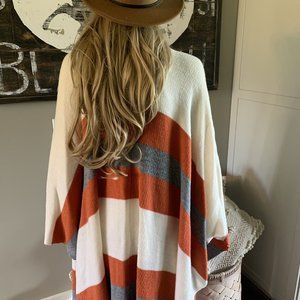 New Western Stripe Fringe Poncho Blanket Cardigan Sweater