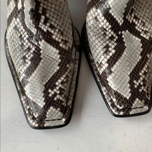 A bold square toe makes these striking python-embossed leather boots statement pieces.