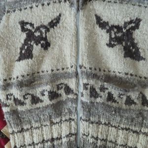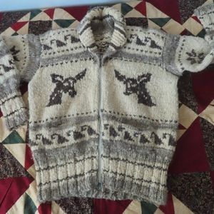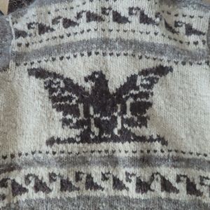 Vtg 60s Cowichan Knit Wool Sweater Canada Chunky Native Aztec Indian