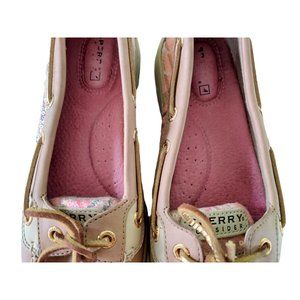 SPERRY TOP SIDER Women's Pink Plaid Sequined Leather Boat Shoes Size 6.5 M