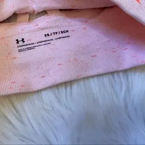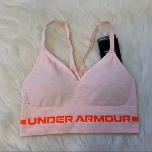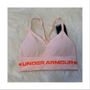 This is a brand new with tags Under Armour Light Support Compression Sports Bra. Size XS. Light and bright orange. Polyester/elastene blend.