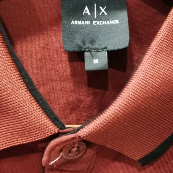 BNWT ARMANI EXCHANGE Burgundy Wine Short Sleeve Polo Shirt Size M