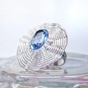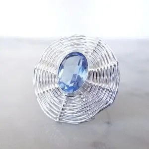 Silver Plated Blue Topaz Weave Cocktail Ring Size 9