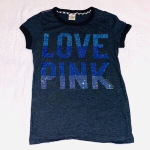 VS PINK Bling Rhinestone Logo Tee Shirt