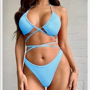 Qinsen Sexy Straps Halter Cross Front High Cut Thong 2 Piece Bikini Swimsuit Set