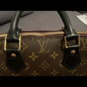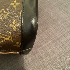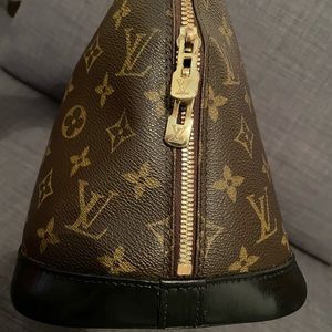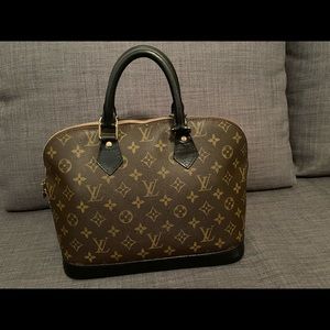 Authentic vintage Louis Vuitton Alma pm size. Vachetta part is sanded and dyed black.