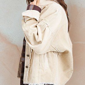 Last 1! NWT Raw Hem Corduroy Jacket in Ecru (Cream) Size L