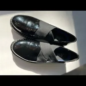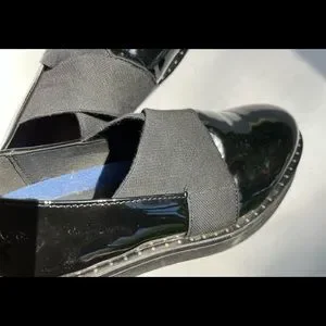 These BOS & Co shoes have it all - black patent leather slip on loafter with elastic straps and STUD! accents. I just loved these shoes, however my high arch prevents me from wearing them. But they are adorable if you don't share my problem!