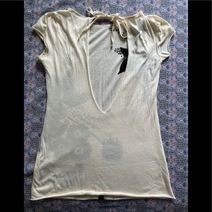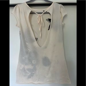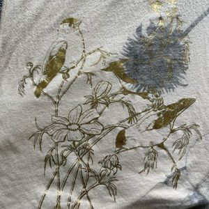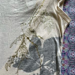Topshop/ Realitee T-shirt with birds and plant print pattern.