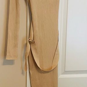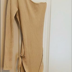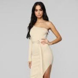 Above The Basics One Shoulder Sweater Dress - Taupe