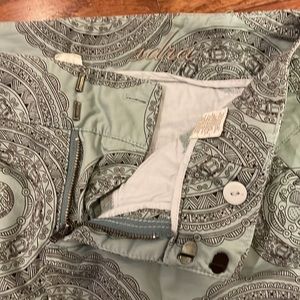 Size 0 light aqua cropped pants with dark brown design