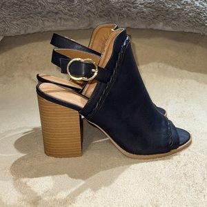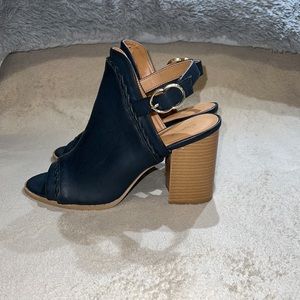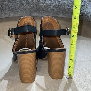 Qupid Women’s Black Peep Toe Block Strap Heels Sandals Size 10