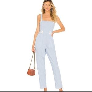 House of Harlow x Revolve White and Blue Devi Stripe Jumpsuit Small
