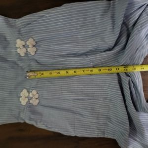 House of Harlow x Revolve Devi Stripe Jumpsuit. Dusty Blue. 100% Cotton. Adjustable shoulder straps. Hidden back zipper closure. Side slant pockets.