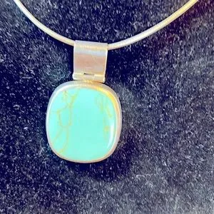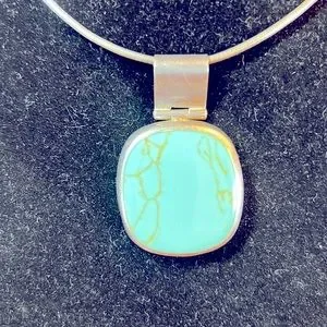 This is a beautiful turquoise stone pendant set in 925 sterling silver. The entire pendant is approximately 2 inches long and the stone is 1.25 by 1.25 inches. The necklace is not included, pendant only.