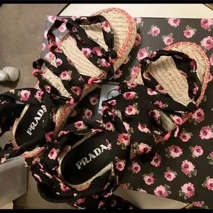 New in box Prada lace up espadrille sandals in size 40. I am a size 10 and they are too small for me. Will fit a 9-9.5 best