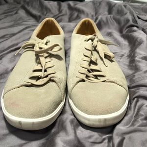 Size 10 cole Haan brown suede sneakers. Slight staining on exterior of both shoes. Purchased used with only one wear.