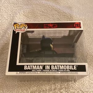 What zooms through the gritty streets of Gotham in search of vengeance? The Batmobile, driven by Batman. Take a ride with Pop! Rides Batman™ in Batmobile and add to your collection of The Batman. Vinyl figure is approximately 5.25-inches tall.