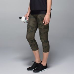 Lululemon Wunder Under Crop Savasana Camo Fatigue Green Size 4