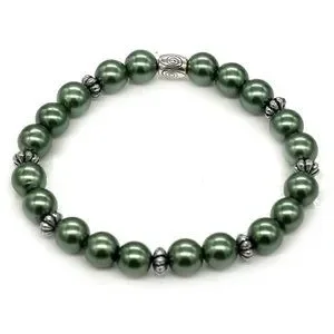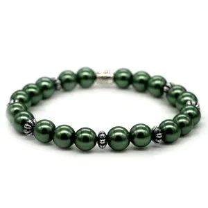 Olive green bracelet with silver spacers.