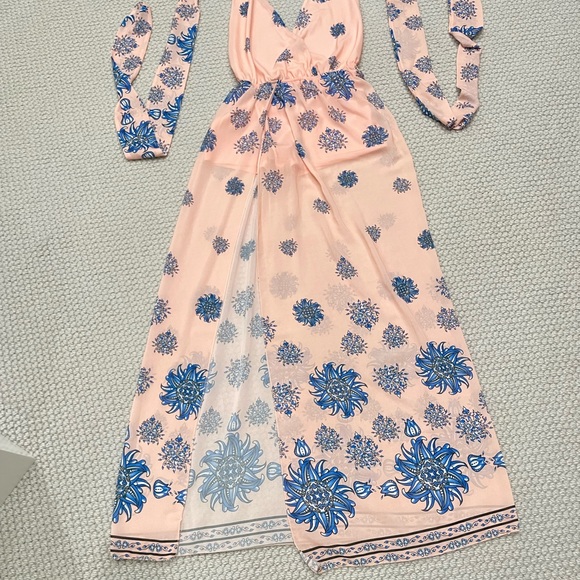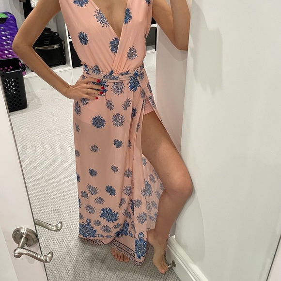 Features: 2 long straps that can be worn in many different ways, elastic waist, right side slit, underneath shorts