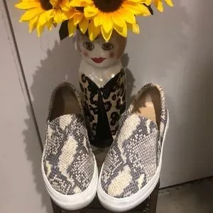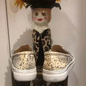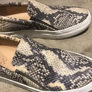 Vince Camuto snakeskin slip ons. Leather upper. Size 7 1/2 M/38. Very comfortable padding and look great on! Worn a few times. Fashion favorite. Animal print. Pull on. Sneakers. Favorite. Statement.