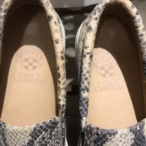 Vince Camuto snakeskin slip ons. Leather upper. Size 7 1/2 slashM/38. Comfy.