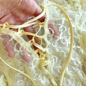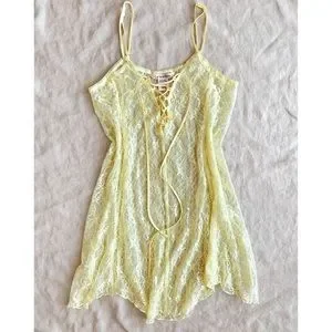 Y2k lace light pastel yellow satin lingerie slip dress.