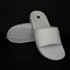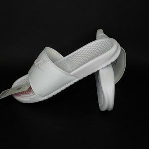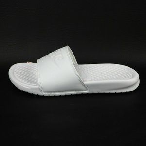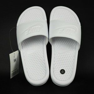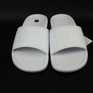 Nike Benassi JDI Women Sandals Slide All White Leather Outdoors