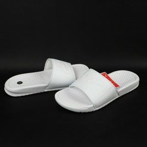 NIKE BENASSI JDI WOMEN SANDALS SLIDE 343881 115 ALL WHITE LEATHER OUTDOORS