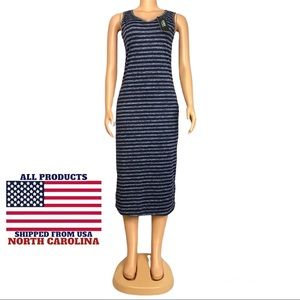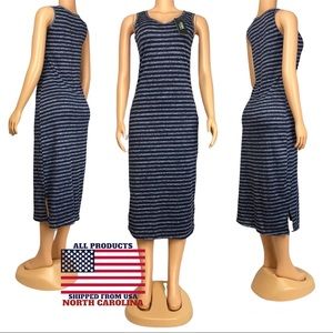 Women's Summer Sleeveless Striped Casual Navy blue Long Dress