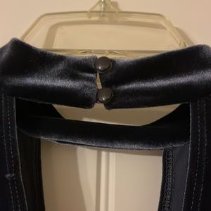 Blue/grey velvet sleeves dress. High neck and buttons. Flowy