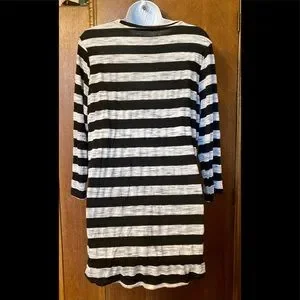 Very nice Como Vintage “The Perfect Tee” long sleeve shirt, black and pale gray stripes, soft fabric, very good gently worn condition, smoke free. Measurements 22” pit to pit, 18” pit to hem.