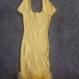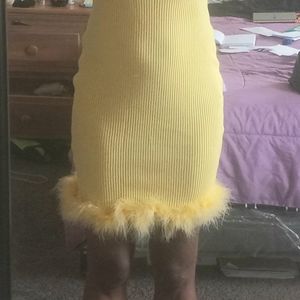 Brand new yellow women dress with feathers at the bottom 💛 NWT