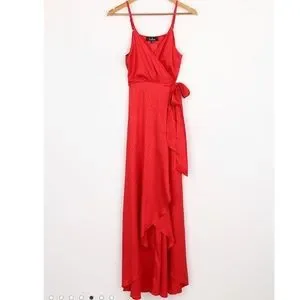 Lulus Exclusive! Keep the party going in style with the Lulus Keeping it Wild Red Satin Jacquard Midi Wrap Dress! Sleek woven satin jacquard, with an embossed zebra pattern throughout, shapes this flirty dress that falls from adjustable spaghetti straps into a surplice neckline and lightly pleated bodice. The wrapping silhouette ties at the waist and ends at a high-low midi hem.