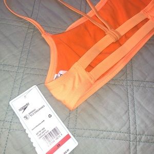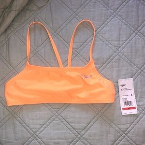 Neon orange sports bra style swim top. Straps in back. Size XS. New with tags.