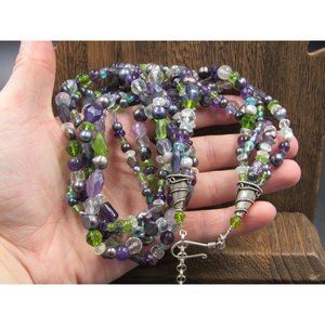 20" Sterling Silver Amethyst Pearl Peridot Quartz Necklace Vintage Minimalist