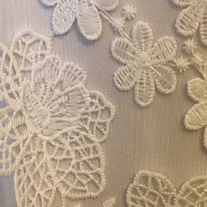 NWT gorgeous retro A-line white organza dress. Sheer neckline and mesh overlay with embroidered floral appliqués. So beautiful and whimsical with incredible detail. Retro A-line sleeveless dress with tie at back of mock neck. Daytime or evening with flirty flats, strappy sandals, or patent pumps. Understated and elegant. Timeless and classic for all ages. Size M