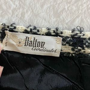 Dalton Coordinates wool lined pencil skirt. Waist measurement when lying flat is 12-1/2” across. Length is approx 22”. There are no other labels other than what is shown. The skirt fits my dress dummy which is a size 4. There is a side zipper. Lined in black. It’s vintage but looks like it could have been bought yesterday because it is so classic. Would look great with black boots!