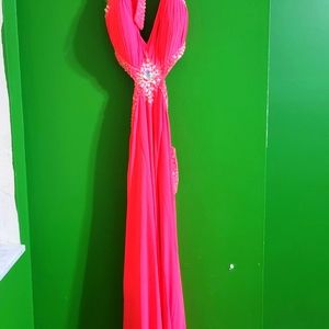 Size 6, open sides, halter top, low back with with beaded details from head to waist. Photos do not do this gown justice. Can wear to prom, a wedding, a gala, reception formal event, or anywhere you need to get a jaw-dropping reaction. Prepare to stun!