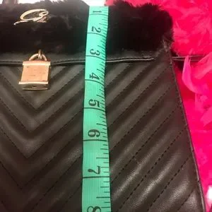Gorgeous quality little quilted crossbody purse with added guess logo cute gold padlock and genuine rabbit 🐰 fur front and back sooooo soft and pretty well loved but no real flaws to note see my closet for tons more guess items always open to offers and bundles note not guess brand logo is authentic fur and logo added to quality purse😍✨❤️