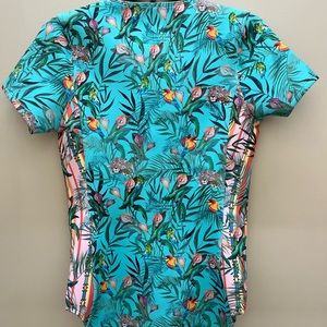 Featuring a gorgeous floral print and short tapered sleeves, it also includes a large front zipper as a nice touch that makes a stylish statement