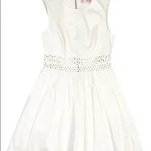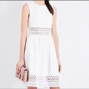 Dress is fully lined. Fabric Content: Shell: 98% Cotton, 2% Elastane; Lace: 100% Polyester; Lining: 100%
