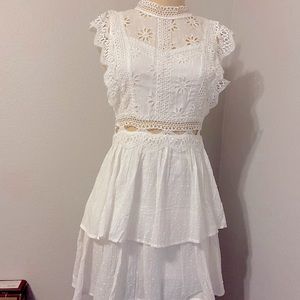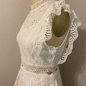 Brand New Never Worn White Dress with crochet floral detailing