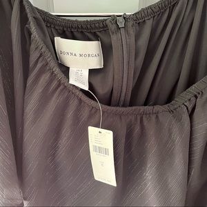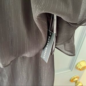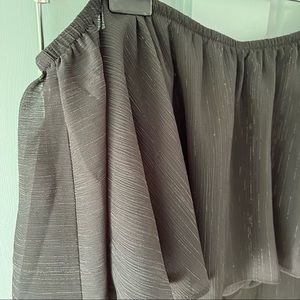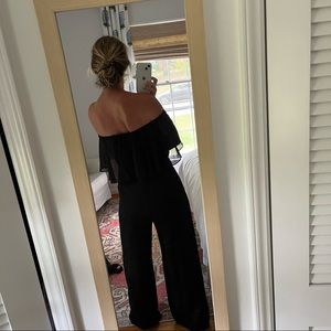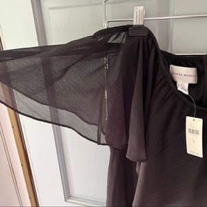 NWT black jumpsuit, lined with sheet overlay (metallic lines as shown in pictures), size 8, zip and hook and eye closure, elastic bodice for off shoulder look. Can be worn as a sleeve, too! Perfect as a wedding guest look. For reference, I am 5’10