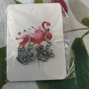 silver bangle set with silver bangle crown 👑 earrings silver heel,blow, black purse,heart