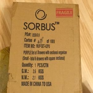 NWT, SORBUS COSMETICS ORGANIZER, PURPLE, SEE DETAILS IN PICTURES, see thru acrylic drawers and slots.THIS off original $