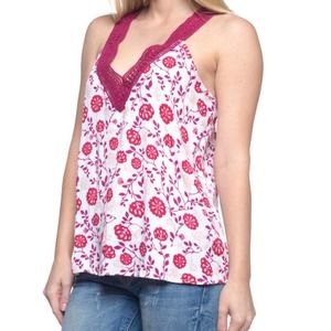 Floral Tank with Crochet V Neck